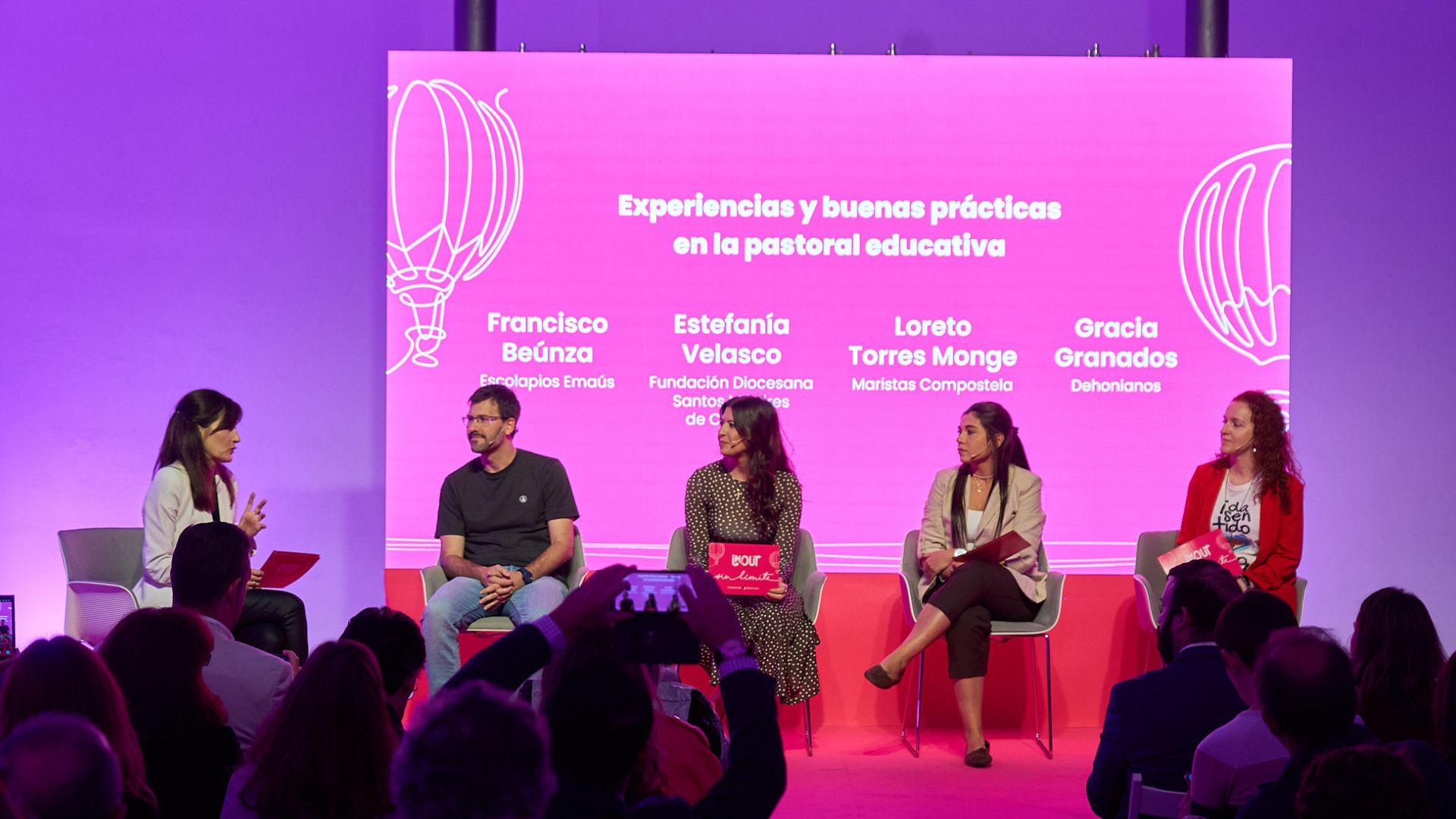La mesa redonda de experiencias innovadoras en la pastoral educativa fue moderada por Sandra Várez González, directora de Comunicación y Relaciones Institucionales de la Fundación Pablo VI. En ella se debatió sobre cómo actualizar la pastoral juvenil ante los cambios sociales y educativos que nos rodean. Representantes de la pastoral escolapia, marista, dehoniana y de la Fundación diocesana Santos Mártires de Córdoba, aportaron su visión y su experiencia. El enfoque de la pastoral, la diversidad de actividades y dinámicas, los programas o el uso de las nuevas tecnologías se analizaron en este diálogo compartido. Hacer co-partícipes a los jóvenes de su pastoral, ofrecer salas de meditación on line, labores de voluntariado, y sobre todo, acompañarles fueron temas compartidos. También estar presentes en las redes se valoró como una manera de evangelizar fresca para estos pastoralistas.